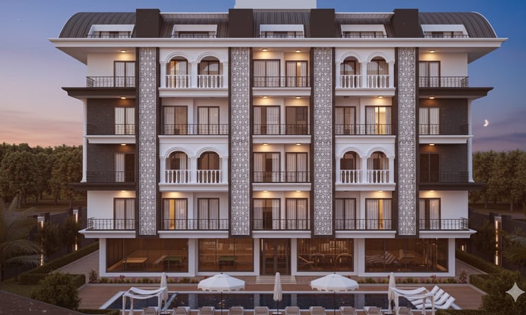 Built with Mak Construction quality, RISING STAR is a unique residential project rising with modern architectural design in one of Alanya's most exclusive areas. The project, which stands out for its proximity to the city center and beaches, offers a unique opportunity for both investors and those seeking a comfortable lifestyle with its social living areas and high-end technical equipment. Designed for those seeking a new lifestyle in Alanya, RİSİNG STAR is poised to become the region's new star, just as its name suggests.